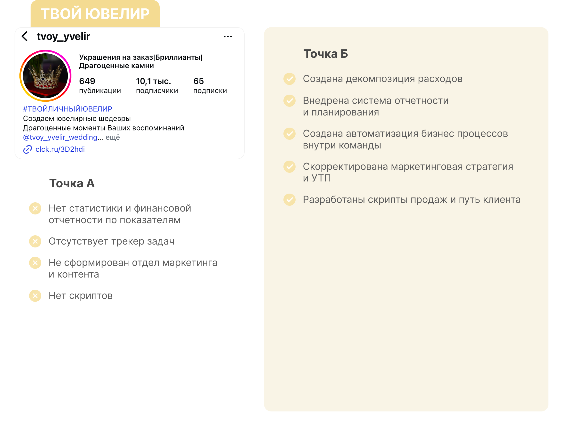 3. Было-стало: Я наконец-то стала выстраивать систему и порядок во всех процессах, не только в маркетинге, убрала неэффективные связки в команде и подрядчиках.